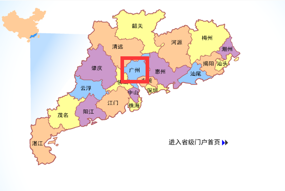 3、在地圖中點(diǎn)擊“廣州”區域(如下圖紅色方框所示)。