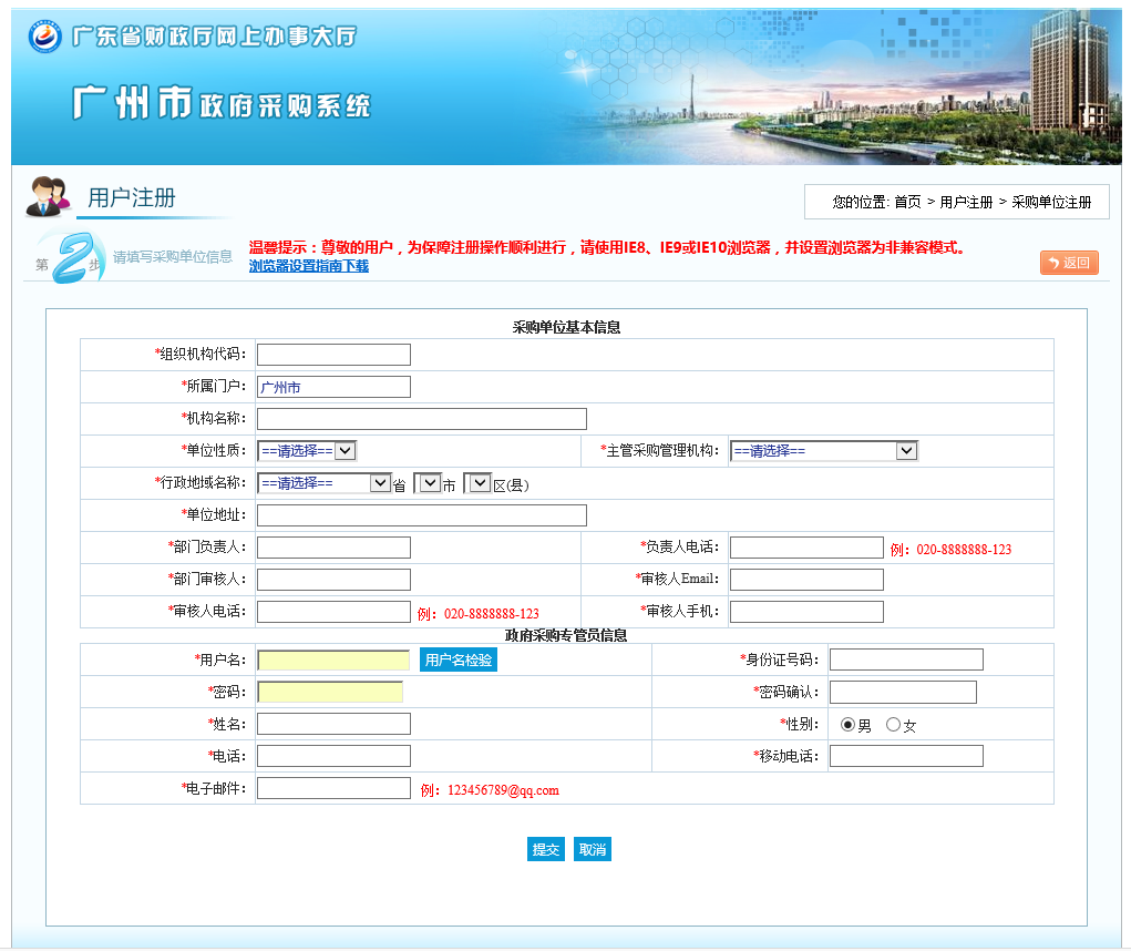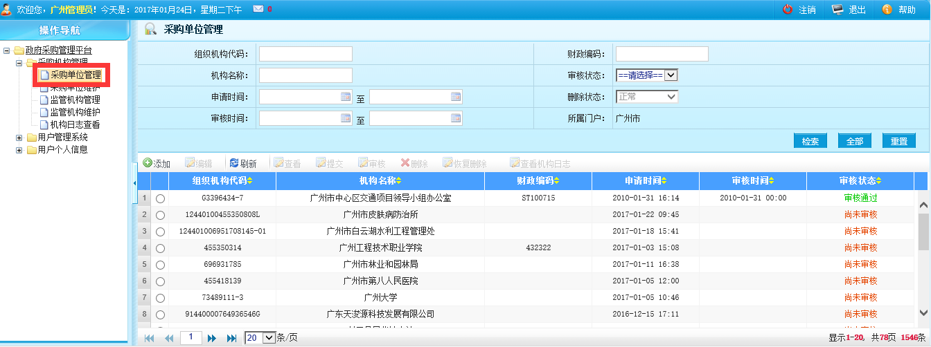 廣州市政府采購系統采購人省網(wǎng)注冊及監管機構審核操作指引