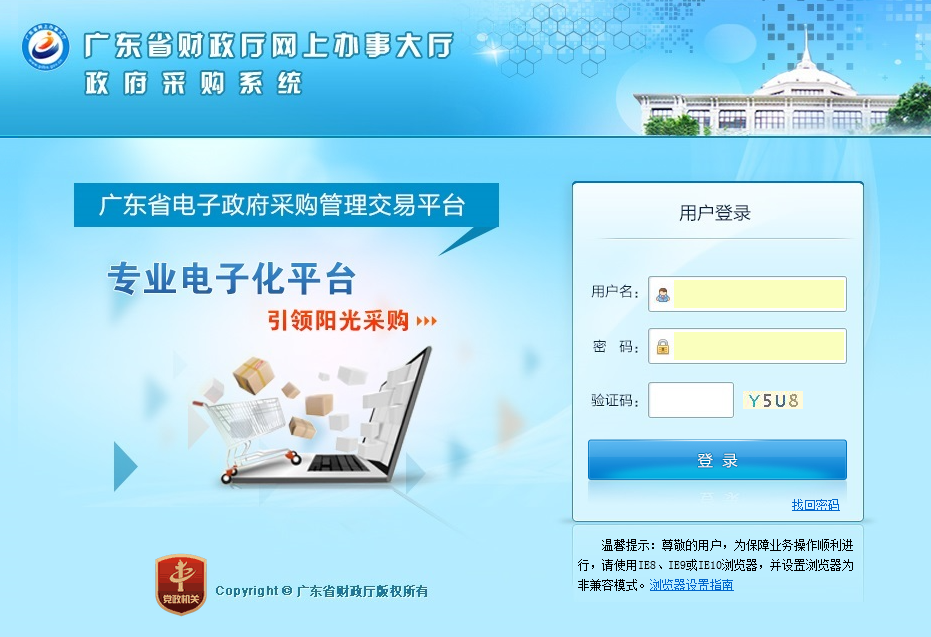 1、采購人使用網(wǎng)頁(yè)瀏覽器打開(kāi)廣東省政府采購網(wǎng)首頁(yè)(具體網(wǎng)址為http://www.gdgpo.gov.cn/)。